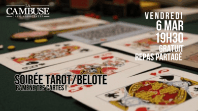 Soirée Tarot Belote Vendredi 6 Mars // 19h30 Gratuit // Repas partagé Ramène tes cartes et de quoi grignoter entre…