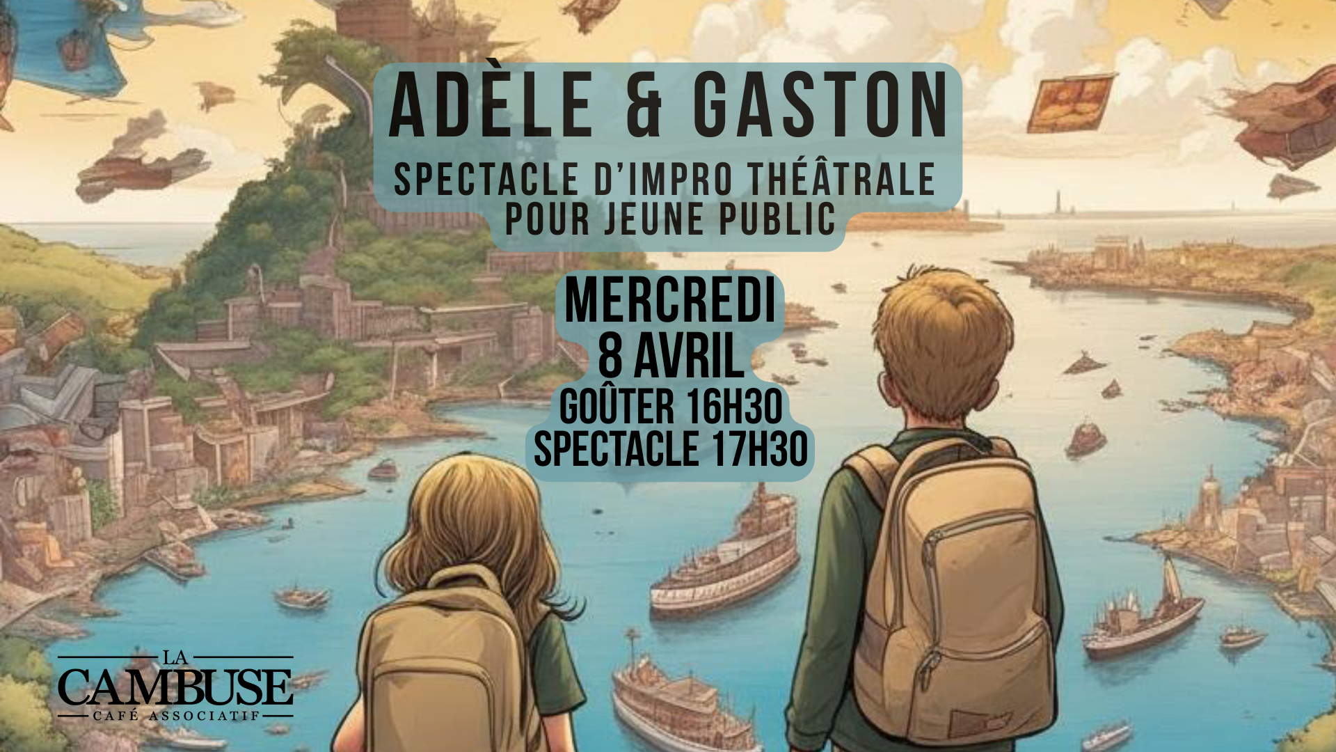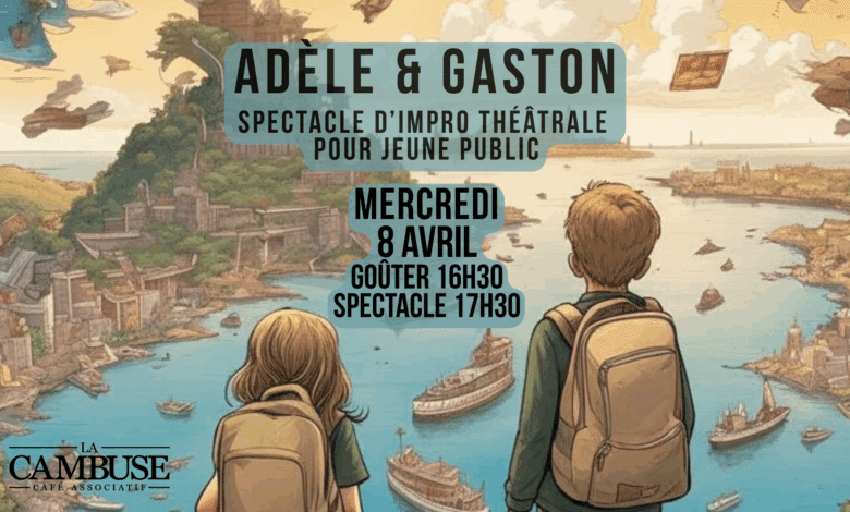 Goûter des Vacances et spectacle Adèle & GastonSpectacle d'impro théâtrale pour jeune publicAu chapeau Gouter avec les fouées du four à pain à 16h30Spectacle à 17h30