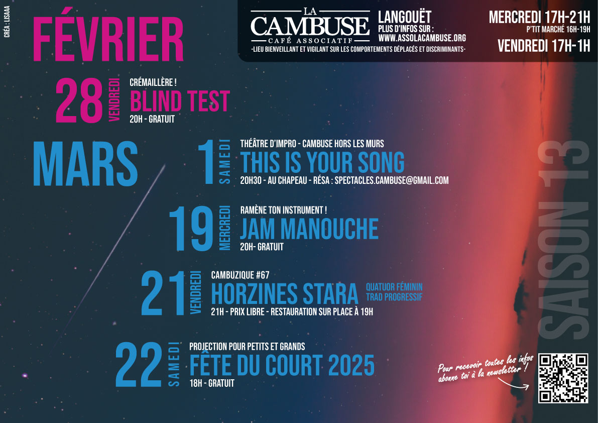 Accueil/Programme/Programmation Février Mars 25 Programme Programmation Février Mars 25 7 février 20250 28 Moins d’une minute 7 février 20250 28 Moins d’une minute Facebook X Linkedin Tumblr Pinterest Reddit VKontakte Partager par email Imprimer